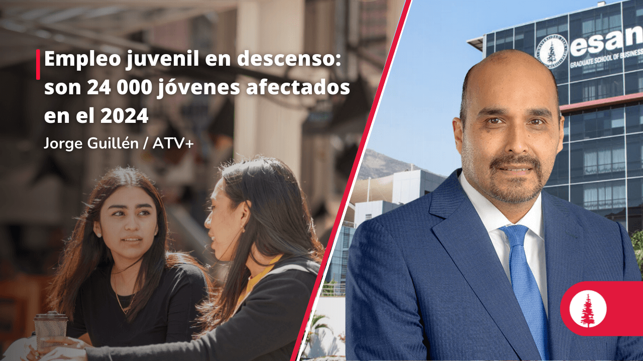 Jorge Guillén, docente de los programas de Finanzas de ESAN, analizó en ATV+ la preocupante caída del empleo juvenil en Perú, destacando que en el 2024 se redujo en un 3.3%. Atribuyó este fenómeno a la falta de recuperación económica post-pandemia, la informalidad laboral y la desconexión entre la oferta educativa y las demandas del mercado.