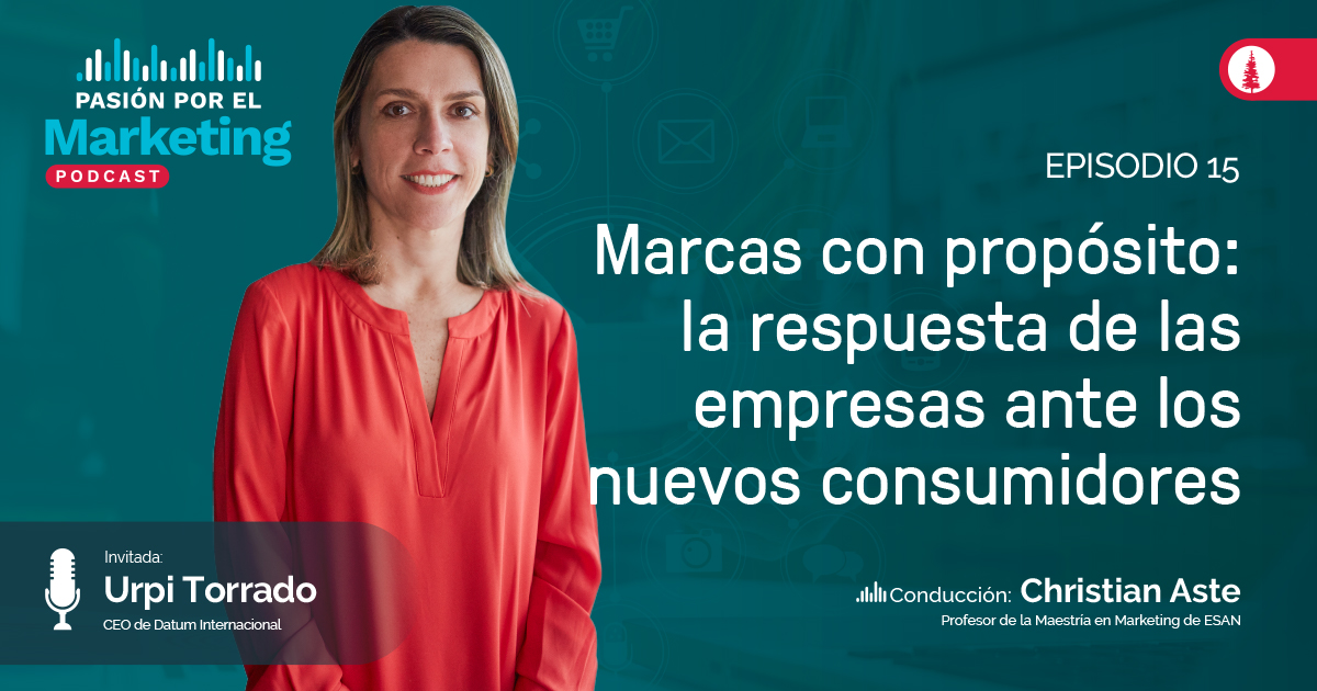 Christian Aste, docente de la Maestría en Marketing de ESAN, y Urpi Torrado, CEO de Datum Internacional, reflexionan en el episodio 15 de #PasiónporelMarketing cómo impacta el propósito de marca en el comportamiento de compra y cuáles son las exigencias de los consumidores con respecto a las empresas.
