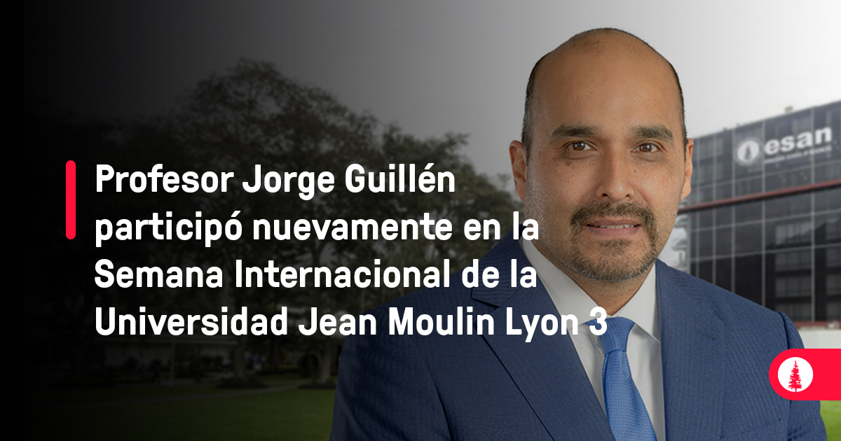 Por cuarta ocasión, y de forma consecutiva, Jorge Guillén, profesor del área de Finanzas de ESAN, participó de la Semana Internacional de la Universidad Jean Moulin Lyon 3. Este evento académico reunió a más de 300 estudiantes y se hizo por primera vez de forma 100 % virtual a raíz de la pandemia de la COVID-19.