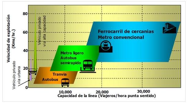 Se observa del gráfico que el tranvía es un sistema de transporte que compite incluso con un metro convencional en capacidad de transporte, siendo económicamente más barato y con menor inversión en infraestructura por kilómetro.