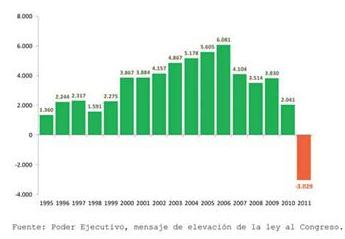 Figura 2: Evolución del saldo comercial de crudo en Argentina en el periodo de 1995 - 2011